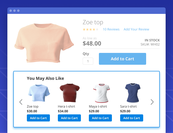 Compose blocks with related, up-selling, cross-selling items depending on various conditions and their combinations. Sort items in blocks by name, price, newest, or leave it random. Choose block design for related products: slider or grid. Add a custom title to capture customers’ attention and specify the max number of slots displayed in a block.