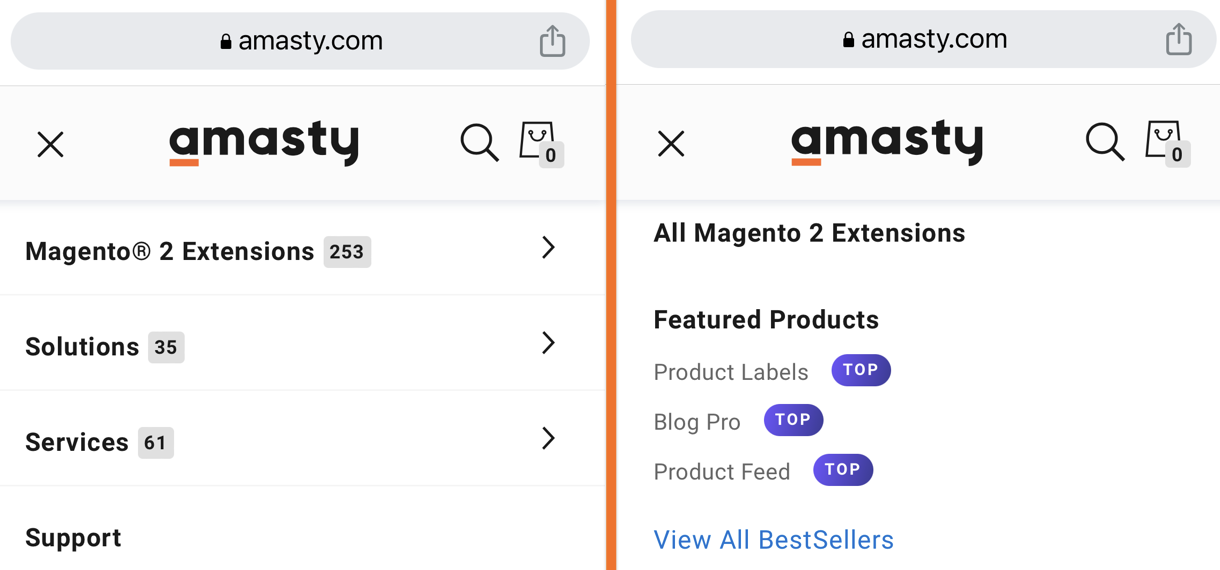 Here’s how we’ve solved this mystery at Amasty. On our desktop website version the Mega Menu allows hovering and clicking, so that each category expands with subcategories upon hover and leads to a subsequent subcategory page upon click.