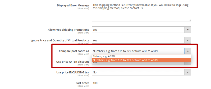 If you’re located in a country that uses numeric postal codes, like the USA, it’s better to choose Compare postcodes as numbers. If postal codes include letters as well, you should use the Compare as strings mode. This option is based on the SQL LIKE function and allows you to use the percent sign in a postal code wording.