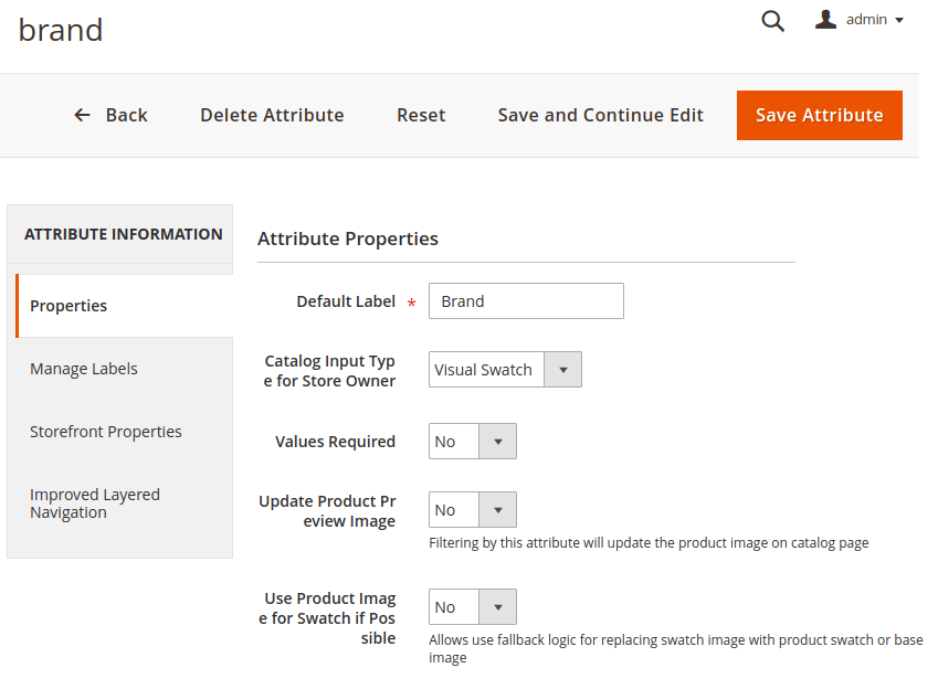 - Go to the Admin Panel>Attributes>Product> select a particular attribute.