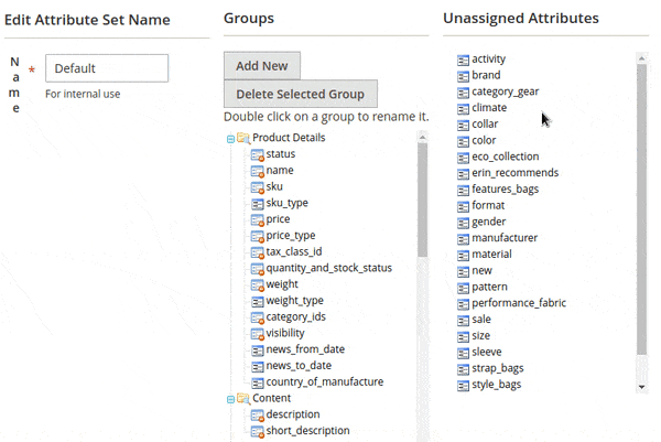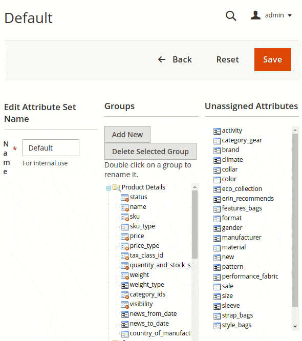 - Go to the Admin Panel>Attributes>Attribute Set>select the Default set, if you want to specify a brand for each product in your catalog;
