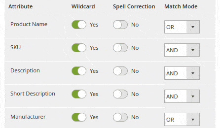 For instance, for SKU, it is better to use a wildcard search, while for descriptions, an autocorrection. You can specify a match mode for the keywords as well -- the way they are combined (AND/OR).