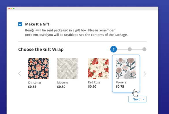 Enable the Gift Wrap Analytical Dashboard to check the wrapping dynamics and see which wraps are the most popular in your store. View the total revenue gained from the extra gifting options and adjust wraps stock to keep up with clients’ demand.