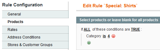 Special Offers Yes, you can choose for which products shipping rates should be modified. This can be done by creating the corresponding conditions on the Products tab: