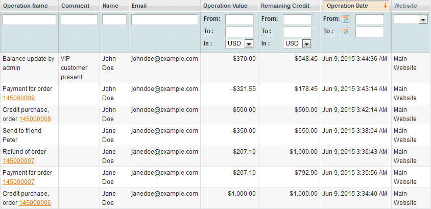 Special Offers Yes, this info is available in Magento admin panel under Reports > Credit Transactions History: