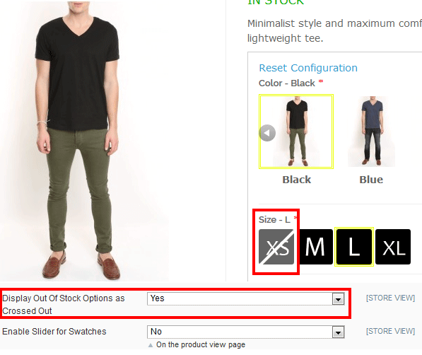 You can choose to cross out image attributes for products that are currently out of stock.
