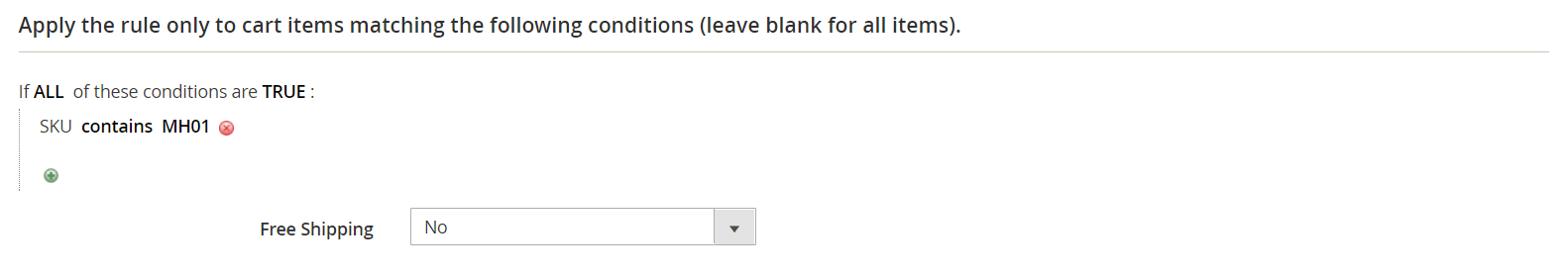 Step 14. If you want to apply this rule only to specific items in the cart, add their SKU in conditions: