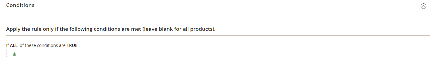 Step 7. Add the conditions that will trigger the rule based on product attributes, products, or cart attributes.