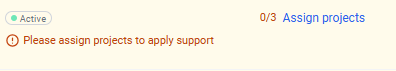 If an active Project Support subscription is not assigned to any project, it will display a message: “Please assign projects to apply support.”