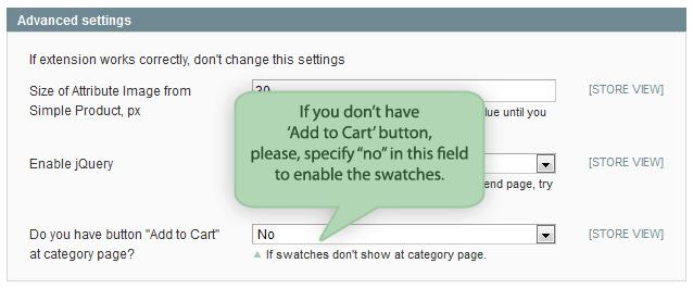 Admin panel/System/Configuration/Amasty Extensions/Color Swatches Pro/Advanced settings