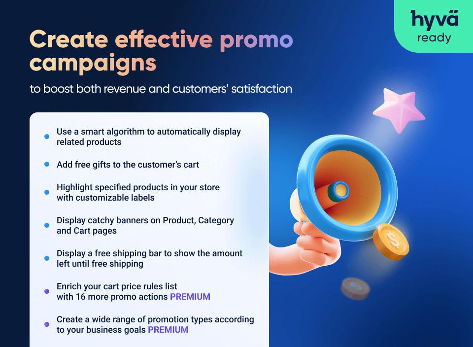 Offer great deals and boost sales using Promotion Suite. This extension allows adding gifts to buyers' carts automatically if all the conditions are met. There's no need to check orders and update them manually from the admin panel.