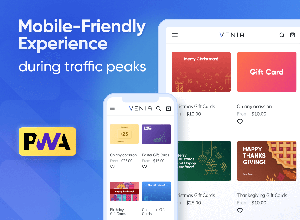Enhance your store's mobile browser presence with the PWA add-on for Gift Card. Let your customers focus on choosing perfect gifts despite the device they are browsing from. Ensure a smooth shopping experience even during heavy loads.