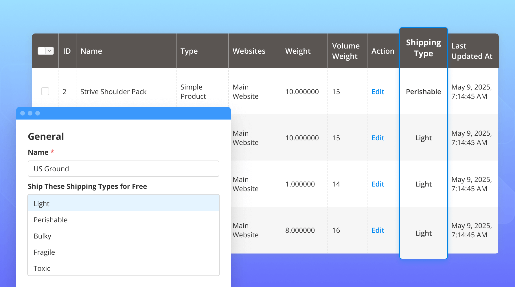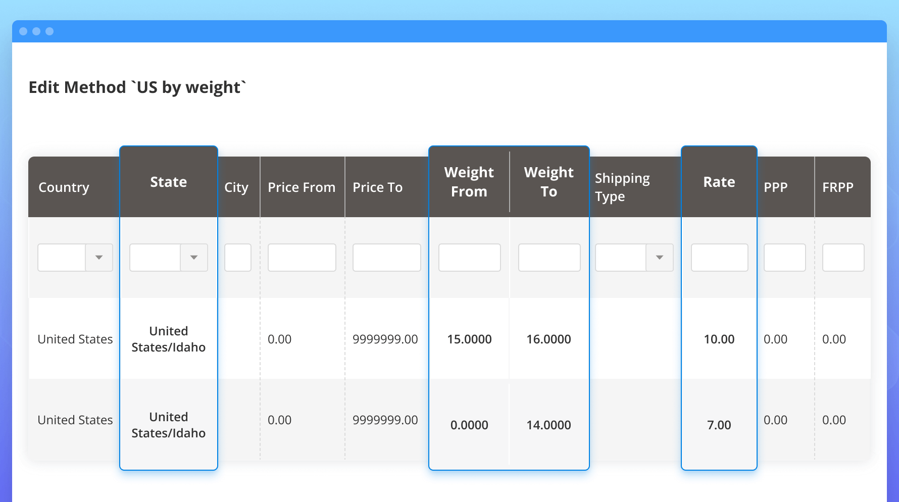 Flexible Amasty's Magento 2 Shipping Table Rates extension options allow setting different transportation types for individual products or product groups. For instance, you can assign higher prices to toxic or fragile items, extremely large items or items located in distant storehouses. Therefore, you'll be able to create accurate scales for all necessary product types and keep them under control.